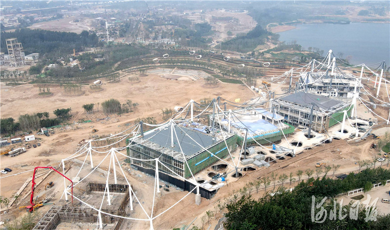 2020年7月21日拍攝的河北省第四屆園林博覽會園博園主場館山水邯鄲建設(shè)現(xiàn)場。(無人機照片) 目前園博園項目內(nèi)山水邯鄲、清渠如許、