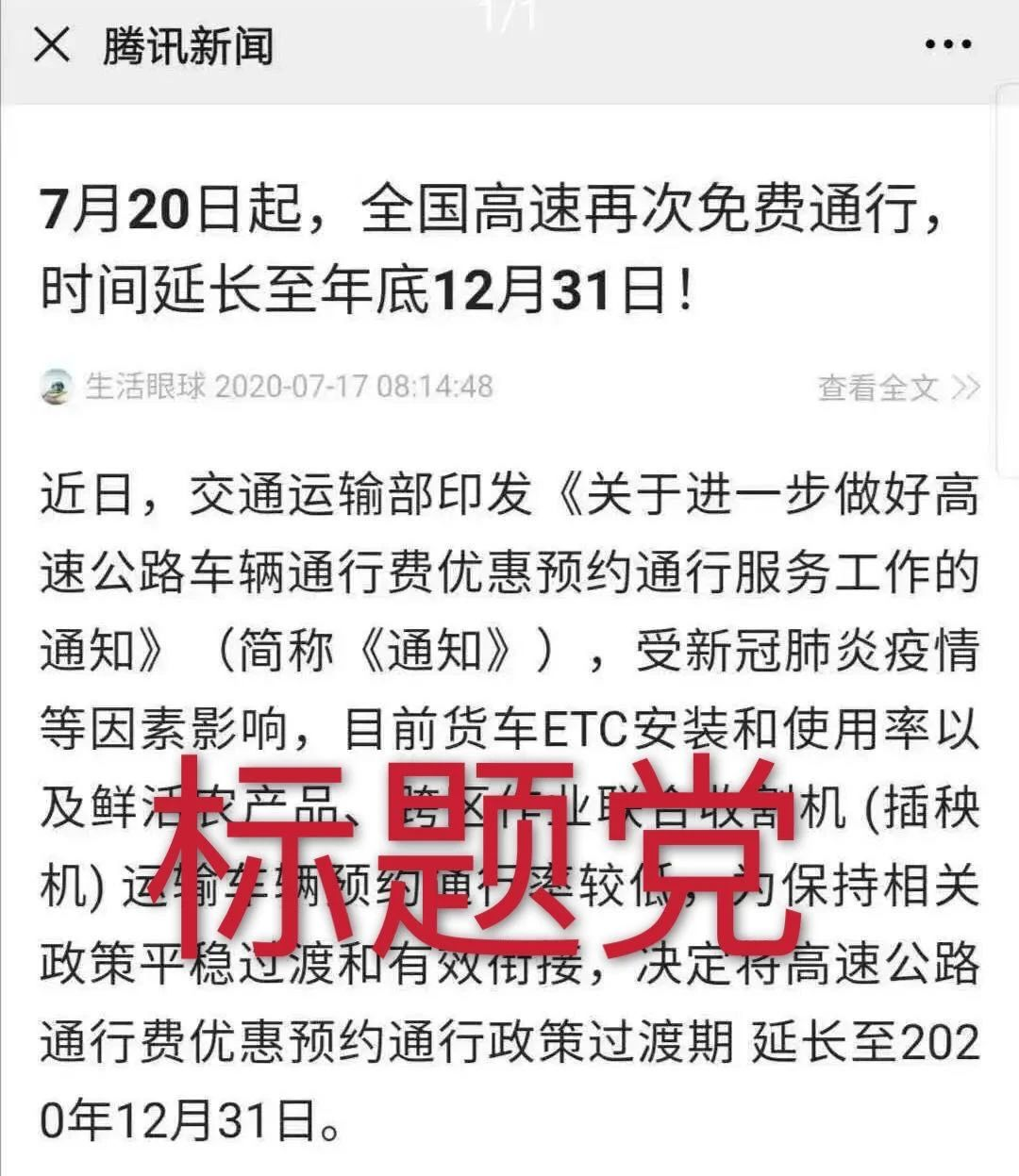 近日,網(wǎng)傳《7月20日起,全國高速再次免費(fèi)通行,時間延長至年底12月31日》↓↓↓ 經(jīng)核實(shí),該政策是面向:運(yùn)輸鮮活農(nóng)產(chǎn)