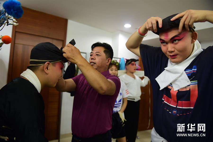 7月14日,滄州京劇團(tuán)的演員在演出前化妝。近日,河北滄州京劇團(tuán)推出2020年戲曲消夏惠民演出(線上版),將線下劇場轉(zhuǎn)移到線上,通過網(wǎng)